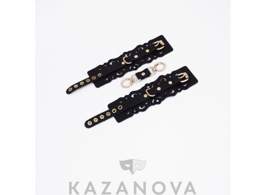 Наручи Sitabella "Лира" со сцепкой из натуральной кожи черные