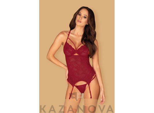 Трусики-стринги акцентируют внимание на ягодицах, а пажи для чулок приковывают взгляд к вашим бедрам. В комплекте Paula ты станешь неотразимой и захватывающей.