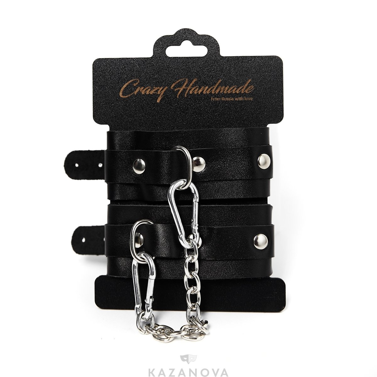 Наручи Crazy Handmade однослойные из натуральной кожи чёрные