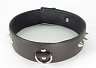 Ошейник выполнен из качественной натуральной кожи, мягкий и комфортный в использовании. Декорирован шипами. Впереди находится сварное полукольцо. Ошейник фиксируется металлическими кнопками, размер XL. Стильный аксессуар поможет воплотить эротические фантазии в реальность.