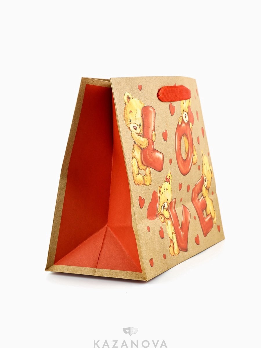 Пакет подарочный крафт «LOVE» 18×10×23 см