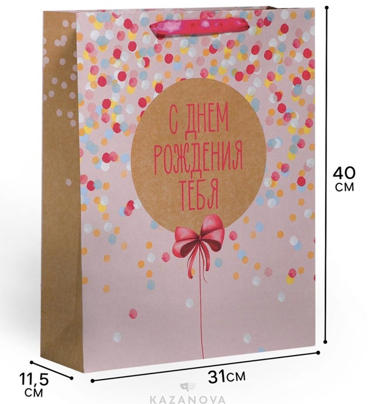 Пакет подарочный "С Днём Рождения Тебя!" 30×41×11,5 см
