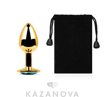 Втулка анальная металлическая малая золотая с голубым кристаллом