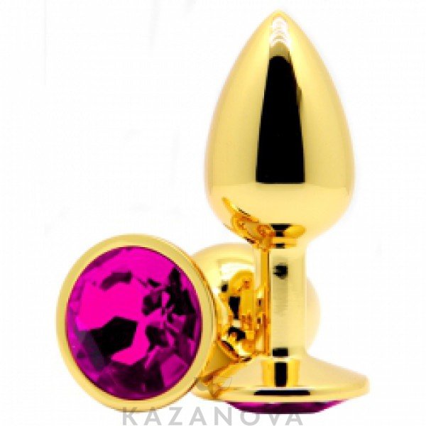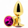 Втулка анальная металлическая малая золотая с розовым камнем 005